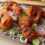 Karahi mein cooking oil aur marinated chicken pieces dal ker dhak dein aur halki ancch per steam cook ker lein (8-10 minutes each side) phir darmiyani ancch per pani sukh janay tak paka lein (6-8 minutes).