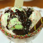 Nuts,bunties,chocolate chips,rainbow sprikles dal ker serve karein.