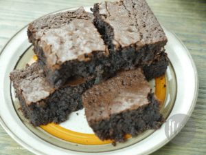 Add batter to baking pan and bake brownies for 30-35 minutes. Insert a tooth pick in baked brownie if it comes out clean,