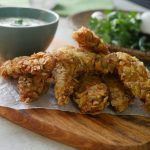 Serve chicken tenders with mayo yogurt sauce!