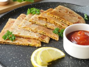 -Tawa garam karein aur rolled dough ko dono sides sa ghee mein fry ker lein.