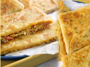 -Tayyar filling (2-3 tbs) dal ker fold karein & properly seal ker lein.