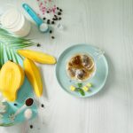 -In a blending jug,add mango,blend well to make a puree & set aside.