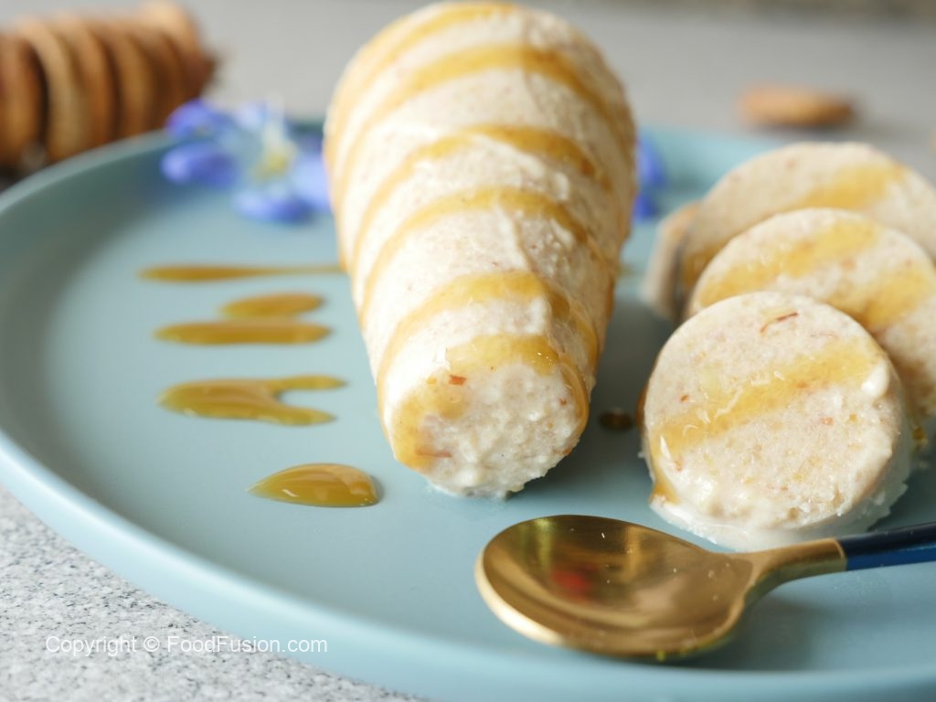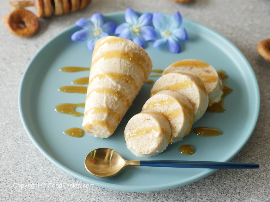 Drizzle caramel syrup and Fig kulfi is ready to serve.