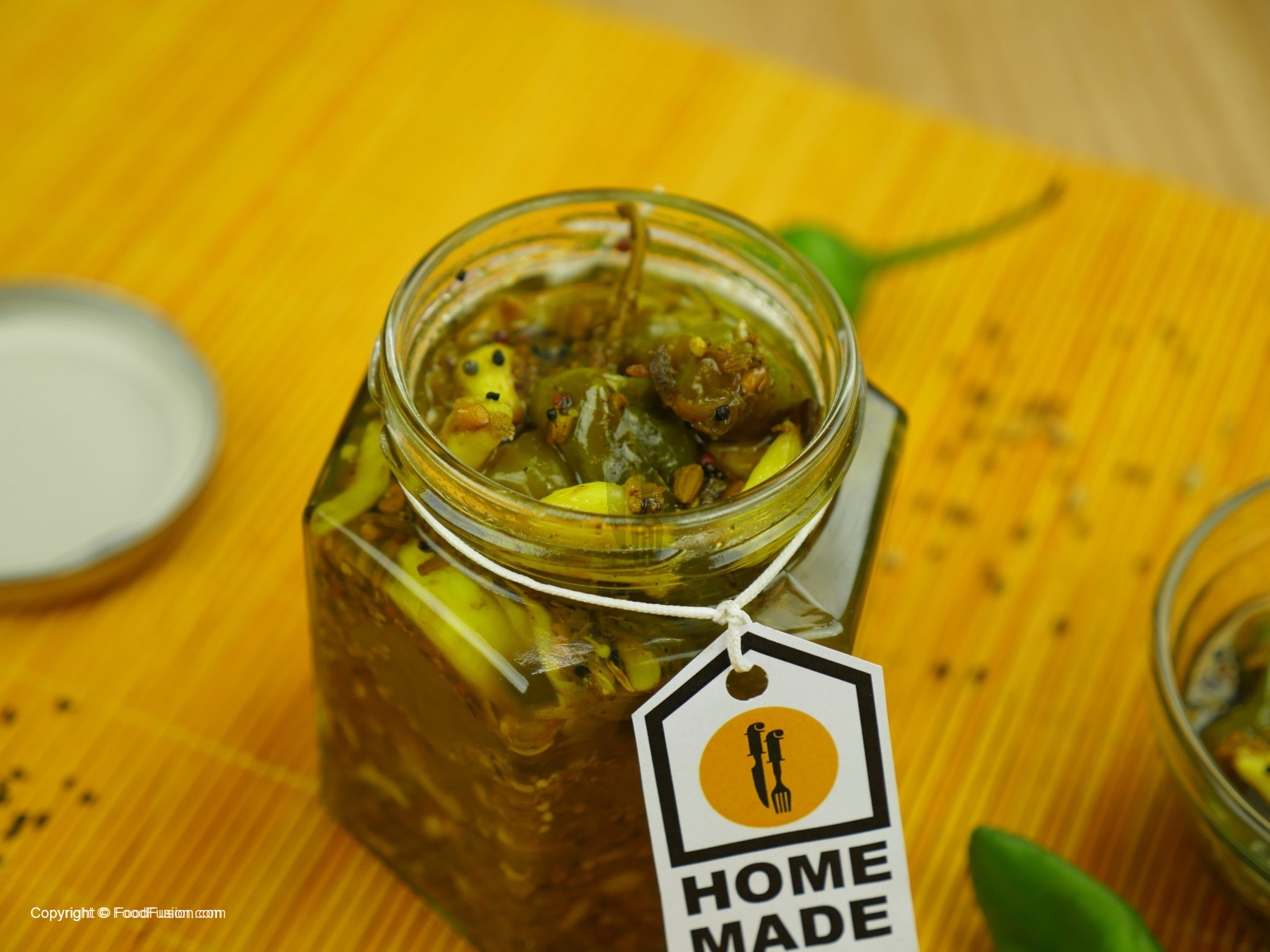 Home made instant green Chili and Garlic pickle recipe that you will want to always keep handy. #HappyCookingToYou