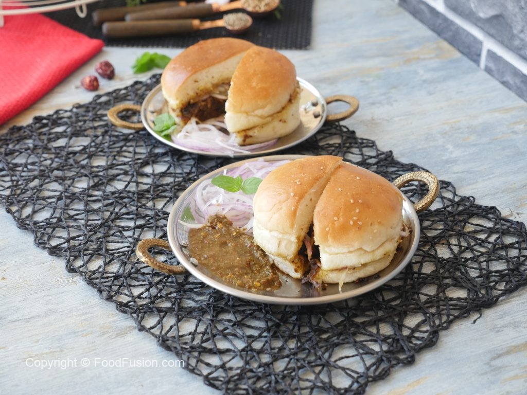 Serve kaleji bun kabab with onion and bun kabab chutney.
