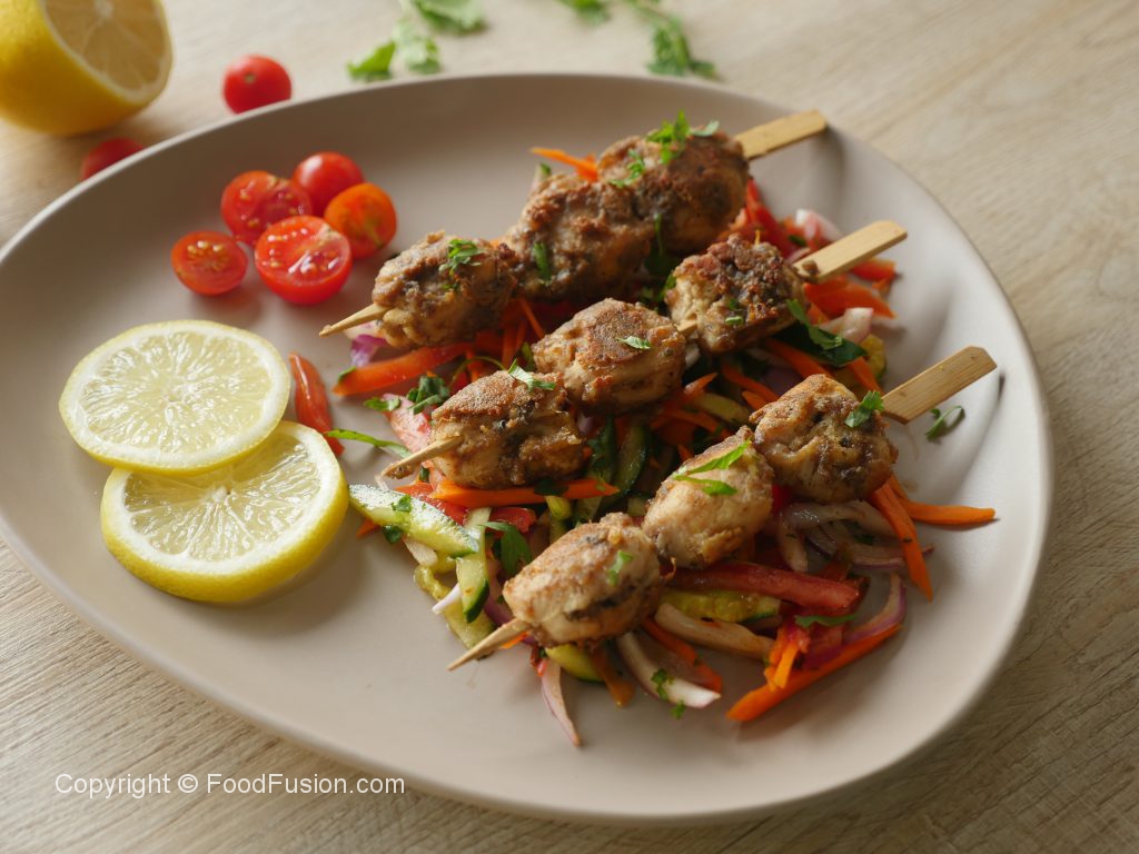 Kasturi chicken skewers ko salad ka saath serve karein.
