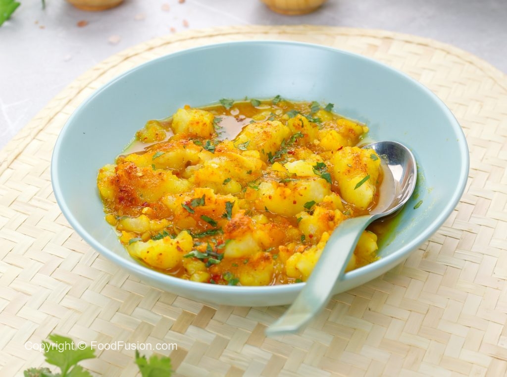 -In a serving plate,add spicy mashed potatoes,khatai water,sprinkle fresh coriander,lemon juice & serve!
