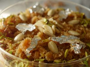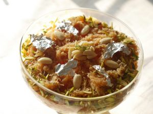 Badam aur chandi ka warq sa garnish ker ka serve karein.