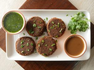Grease your hands with oil,take a mixture and make kababs of equal sizes (makes 16).