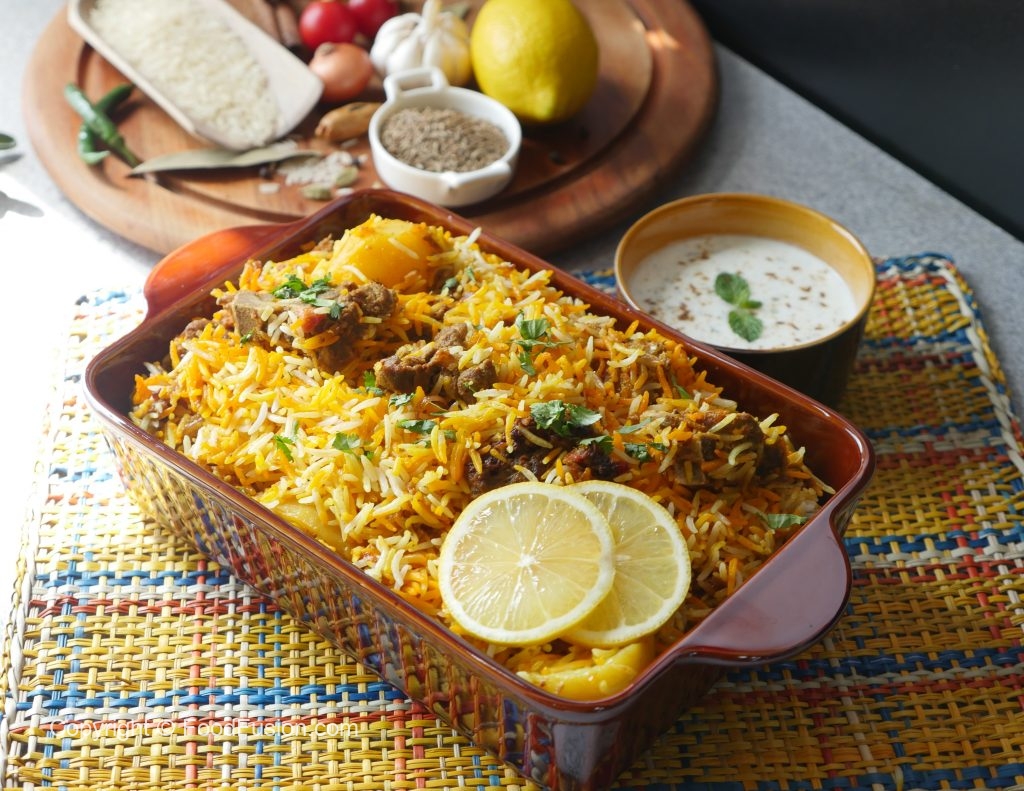 In prepared biryani marinade,add beef and mix well,cover & marinate for 1 hour.