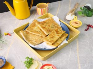 -Heat griddle,grease with butter,place lifafa paratha & fry on medium flame from both sides until golden (makes 4) & serve!