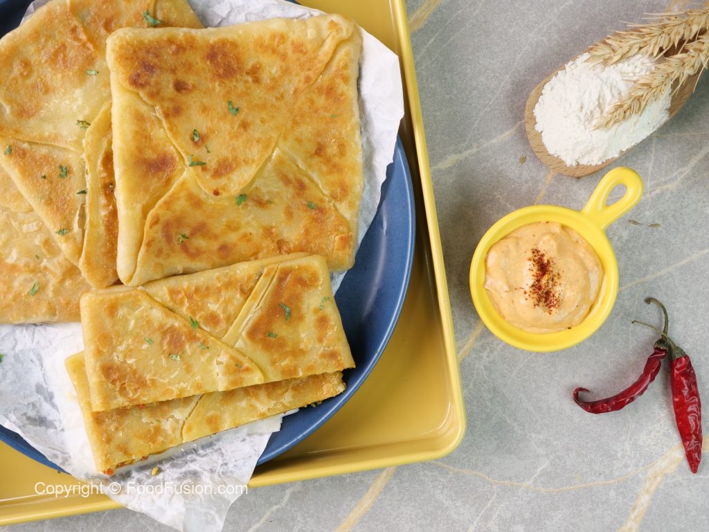 -Tawa garam karein aur makhan sa grease ker lein,lifafa paratha rakh dein aur darmiyani ancch per dono sides sa golden ho janay tak fry ker lein (makes 4) & serve karein!