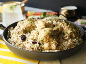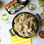 -Remaining gravy mein podina,hara dhania,fried pyaz,boiled chawal ki half quantity,reserved gravy, podina,hara dhania,fried pyaz,remaining chawal,fried pyaz aur steam cooked chicken gravy ka saath dal ker dhak dein aur halki ancch per 15-18 minutes kliya steam cook ker lein.