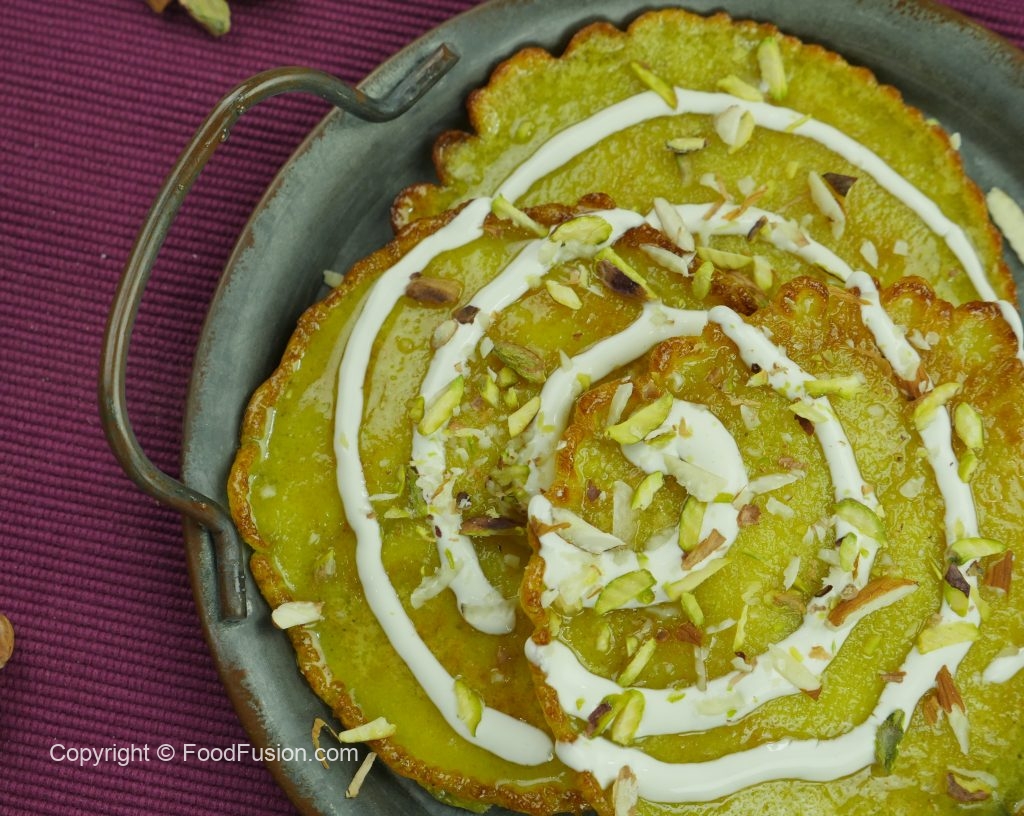 Cream aur badam & pista sa garnish ker ka serve karein.