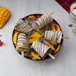 -Pour melted white chocolate in plastic disposable cups/Kulfi molds & tilt the cup to spread inside evenly then remove excess & let it set in refrigerator for 15 minutes then repeat chocolate coating,remove excess & refrigerate until set.
