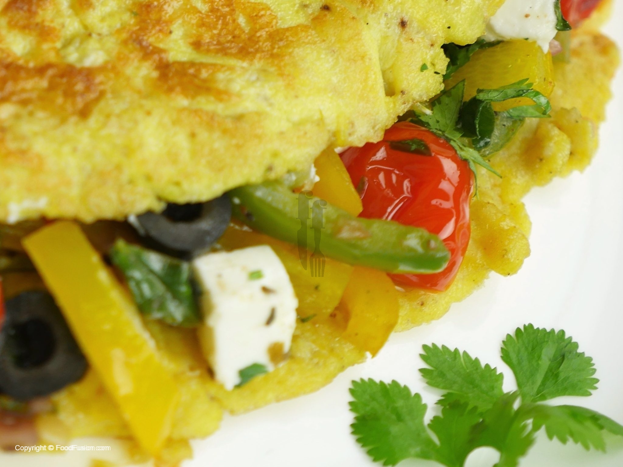 Sprinkle dried oregano and fill stir fried vegetable over half of each omelette.