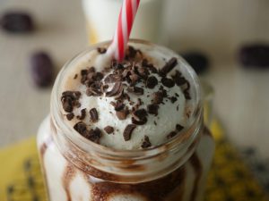 Serving jar mein chocolate syrup,tayyar smoothie,ice cream dal dein aur chocolate sa garnish ker ka chilled serve karein.