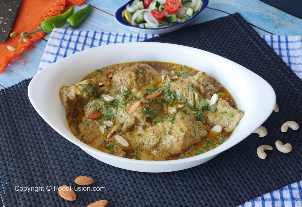 Spice mixer mrein dahi,kaju,badam,khopra,hari mirch,fried pyaz,hara dhania aur podina dal ker ache tarhan blend ker lein.
