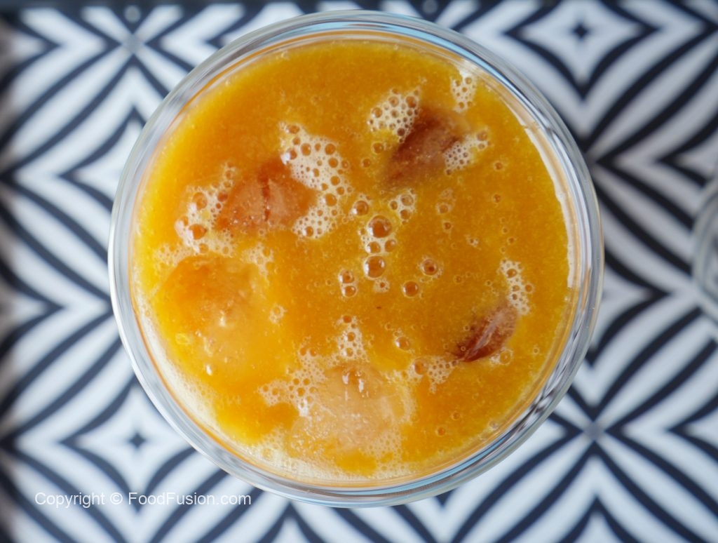 Serving glass mein ice cubes aur apricot juice dal ker serve karein!