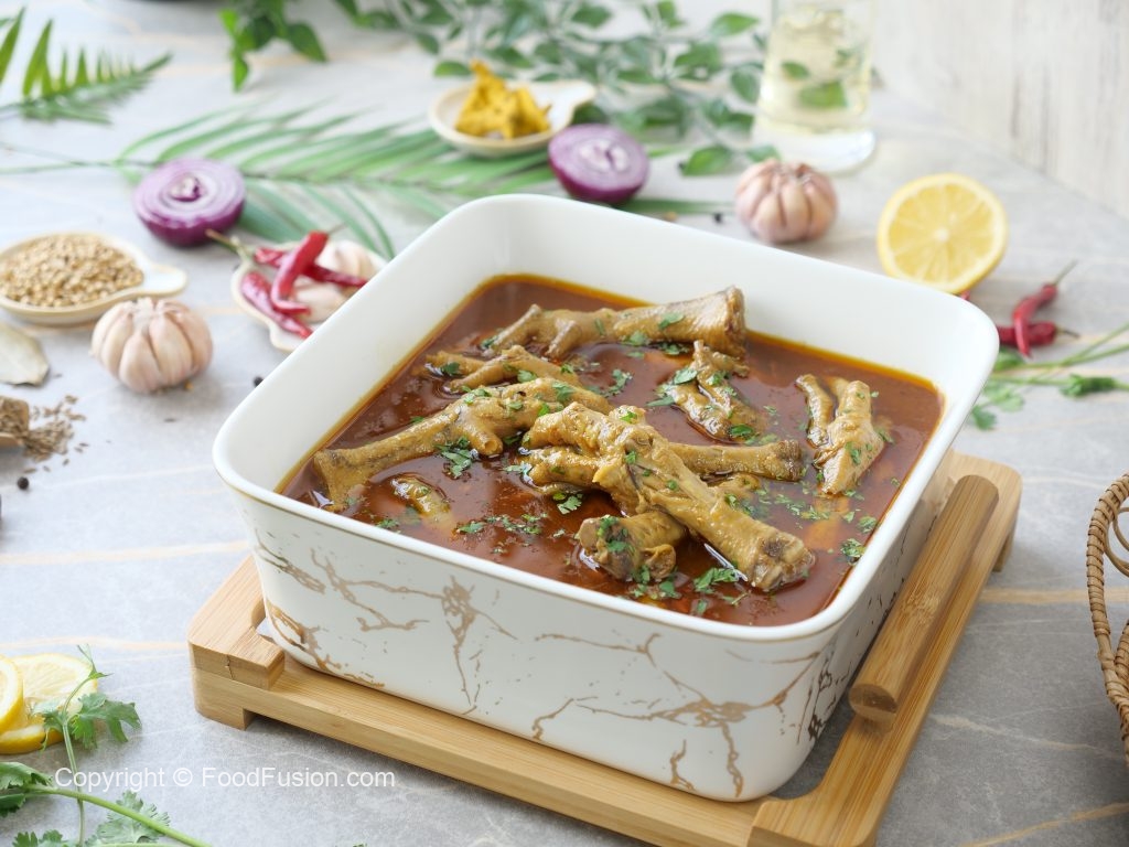 -Fire roast chicken feet on medium flame until its charred from all sides.
