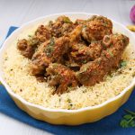 -On serving dish,add butter rice,makhni tikka & pour lemon butter sauce.