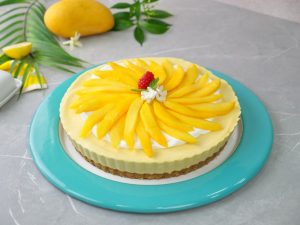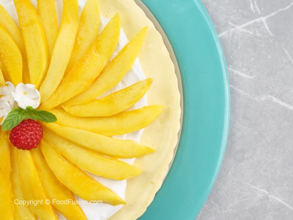 -Add & spread prepared mango cream on biscuit crust & refrigerate until set (4 hours).