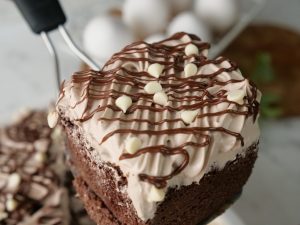 -Remove cling film and spread prepared Nutella frosting on the cooled cake.