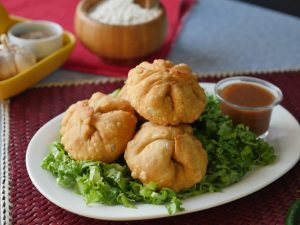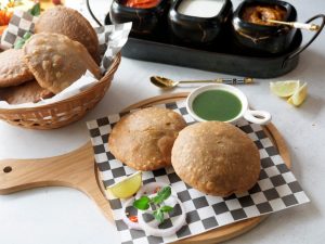 • Poke a small hole in the center of the Gol Gappa (or Poori).