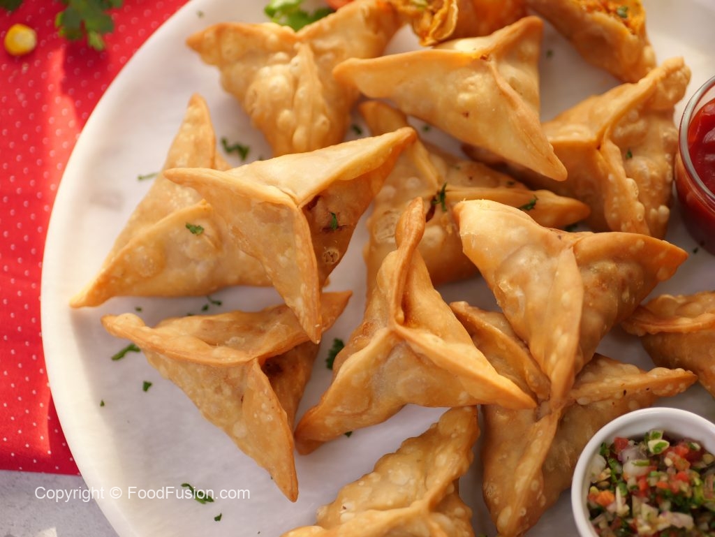 -Add prepared filling,apply water,fold & seal corners to make a samosa (makes 25-30).