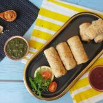 In a wok,heat cooking oil and fry potato samosa roll on low flame until golden.