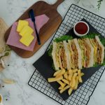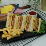Cut into triangles pieces & serve with french fries and tomato ketchup!