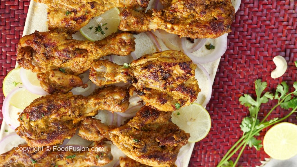 -Chicken drumsticks mein vertically deep cut laga lein aur butterfly ki tarhan open ker lein & side per rakh dein.