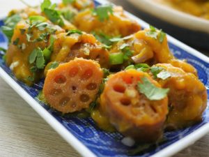 -Green chillies, orange food color, fried onion, lemon slices, fresh coriander, mint leaves dalain, phir kitchen cloth aur lid se cover kar ke dum par 10-12 minutes paka lein.