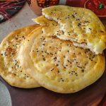 Brush on each naan and sprinkle black & white sesame seeds on top.