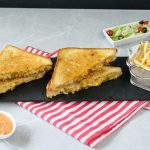 -Flip the prepared sandwich in a frying pan (butter side down),apply butter,cover & grill/cook on very low flame from both sides until golden & crispy (makes 4 sandwiches).