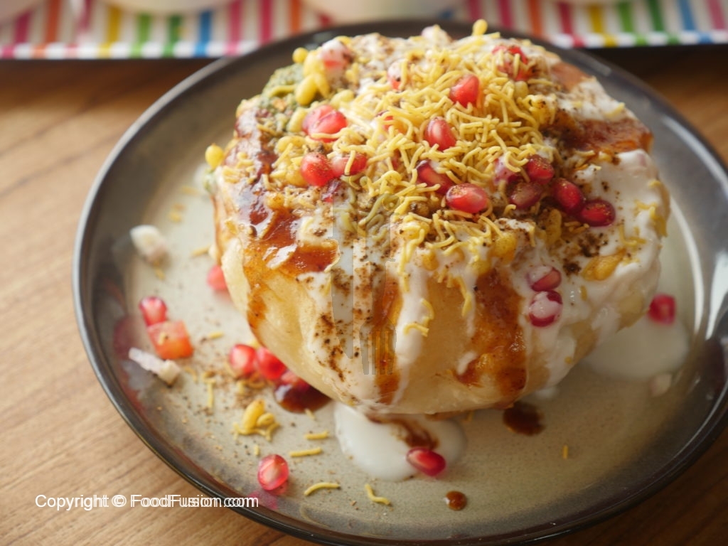 Kachori mein hole karein,chanay,moon daal phulkiyan,aloo,tamatar,pyaz,dahi,meethi chutney,green chutney,lal mirch crushed,boondiyan,sev/papri,anar,dahi,chaat masala aur sev/papri dal ker serve karein.