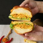 -On one side,spread butter,add lettuce leaves,cabbage,prepared butter chicken & cheddar cheese slice.