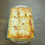 Once golden crust of mozzarella appears on the top then turn off the oven. Put baking dish aside and cut lasagna into square shape and now it’s ready to serve.