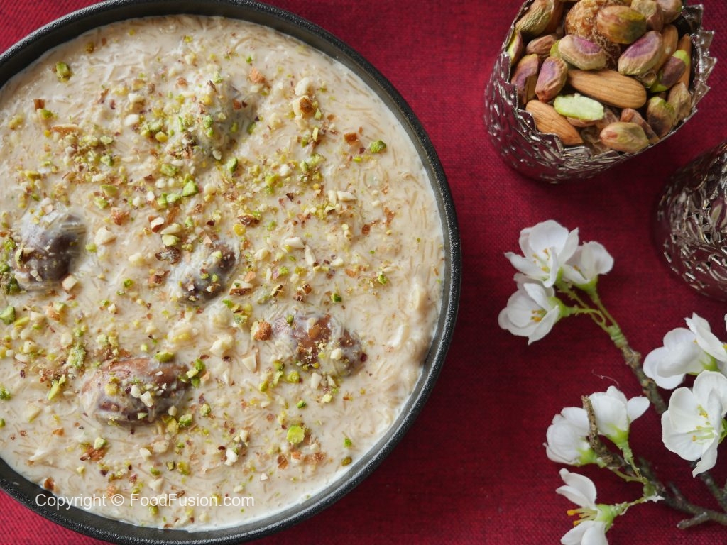 Ab roasted sawaiyan dal ker ache tarhan mix karein aur halki ancch per doodh adha reh janay tak paka lein (approx. 15-20 minutes) aur bech bech mein chamcha chalatay rahein.