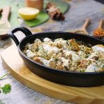 On heated sizzler pan,add chicken boti,pour yogurt,flavored butter & serve!