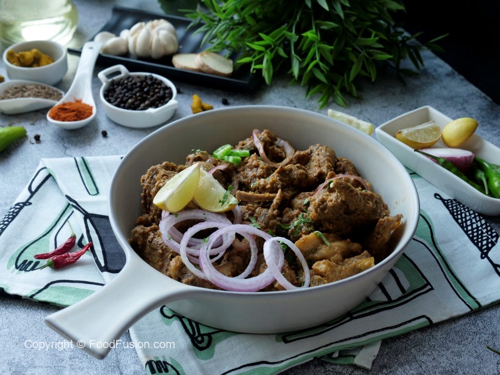 Add marinated mutton & mix well,cover & cook on medium flame until meat is tender (40-45 minutes).