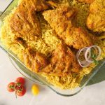 -In a dish,place fried chicken pieces,add prepared marinade,rub evenly & reserve ½ Cup of marinade for pulao,cover with cling film & marinate for 1 hour.