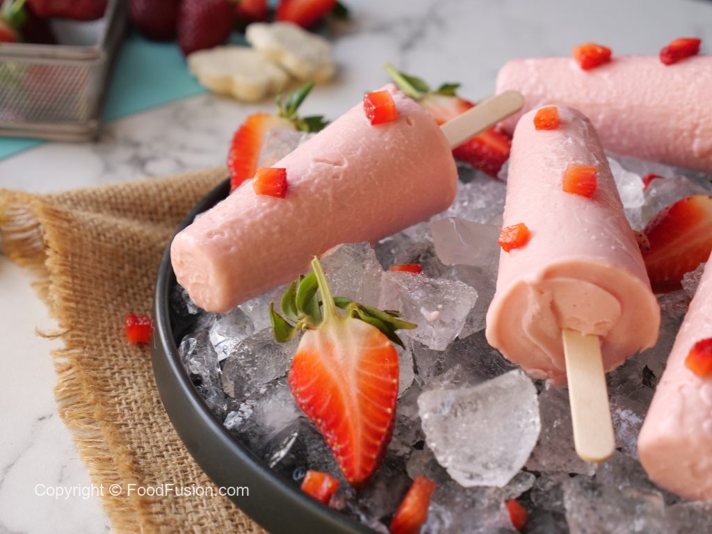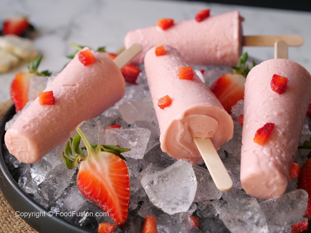 Make and freeze these strawberry kulfis and serve this lovely dessert to guests any time. #HappyCookingToYou #FoodFusion