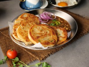 Bun paratha ko chanay ka salan, half fry anda ya chaye ks ath serve karen!