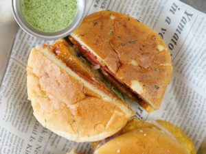 -Cut in half & serve with prepared green chutney & tomato ketchup!
