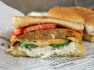 -On green chutney,add coleslaw,cucumber slices,daal kabab,onion rings,chaat masala,tomato slice & cover with top bun to make a bun kabab.