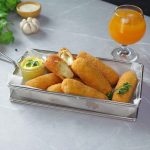 -Coat with all-purpose flour then dip into whisked eggs & coat with breadcrumbs then repeat same coating (makes 8-10 fingers).