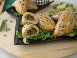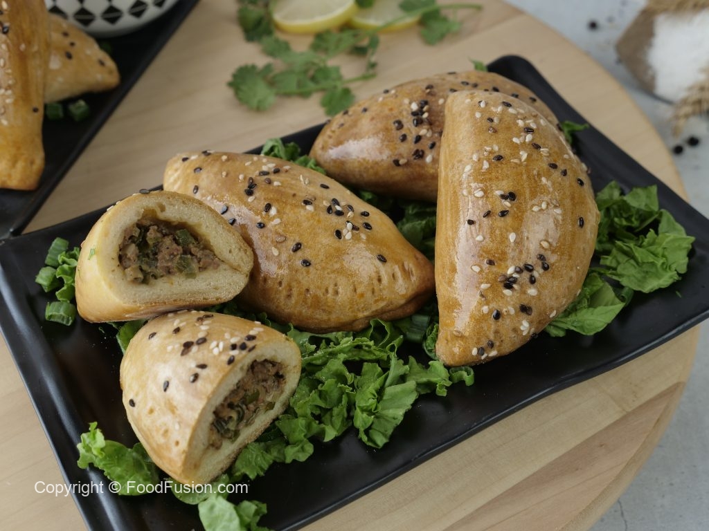 On flour dusted baking tray,place prepared pockets,brush yogurt & milk mixture and sprinkle sesame seeds.