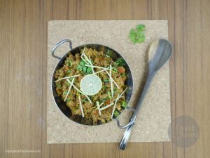 Now take another pan, put ½ cup oil in it and fry 1 thinly sliced onion add the chopped beef, add beef stock, cover the pan and let it cook for 5-7 minutes.